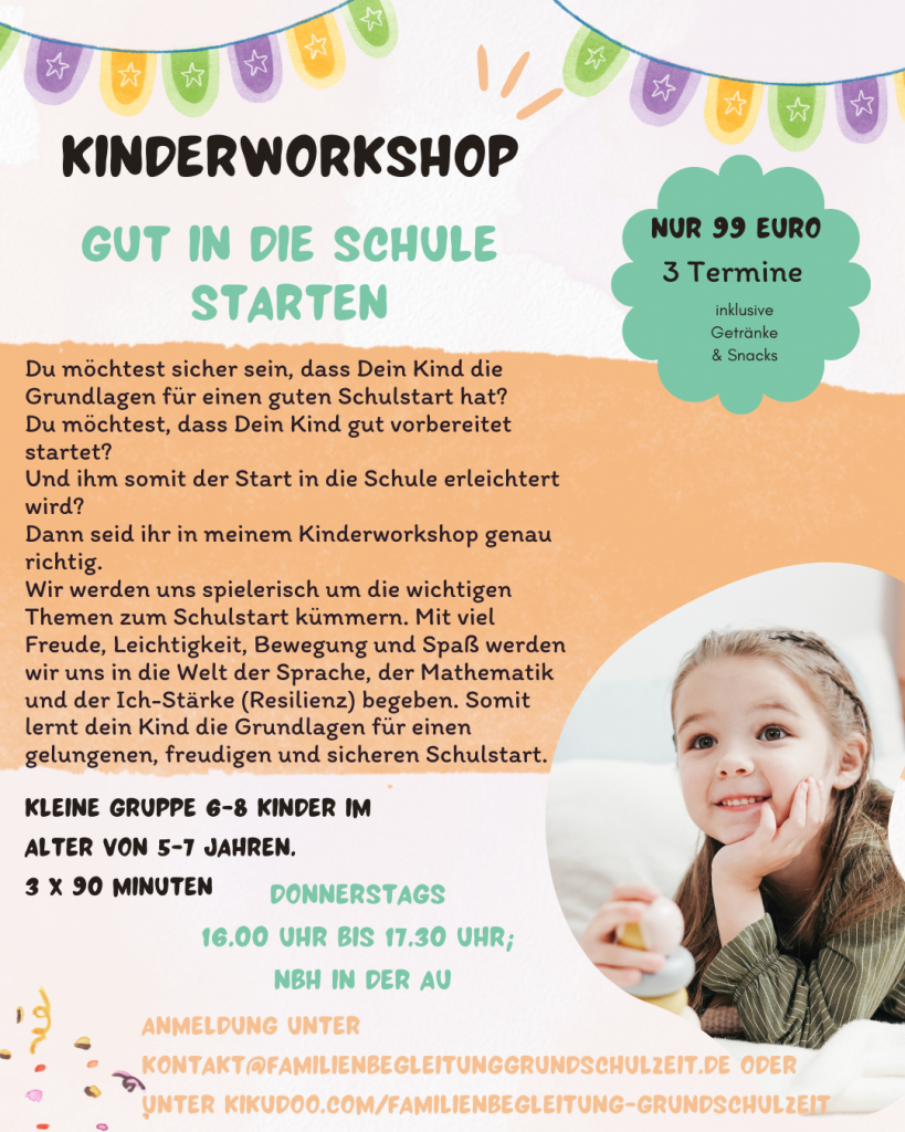 In meinem „Gut in die Schule starten“ Workshop lernen wir spielerisch die Grundlagen für einen gelungenen Schulstart.